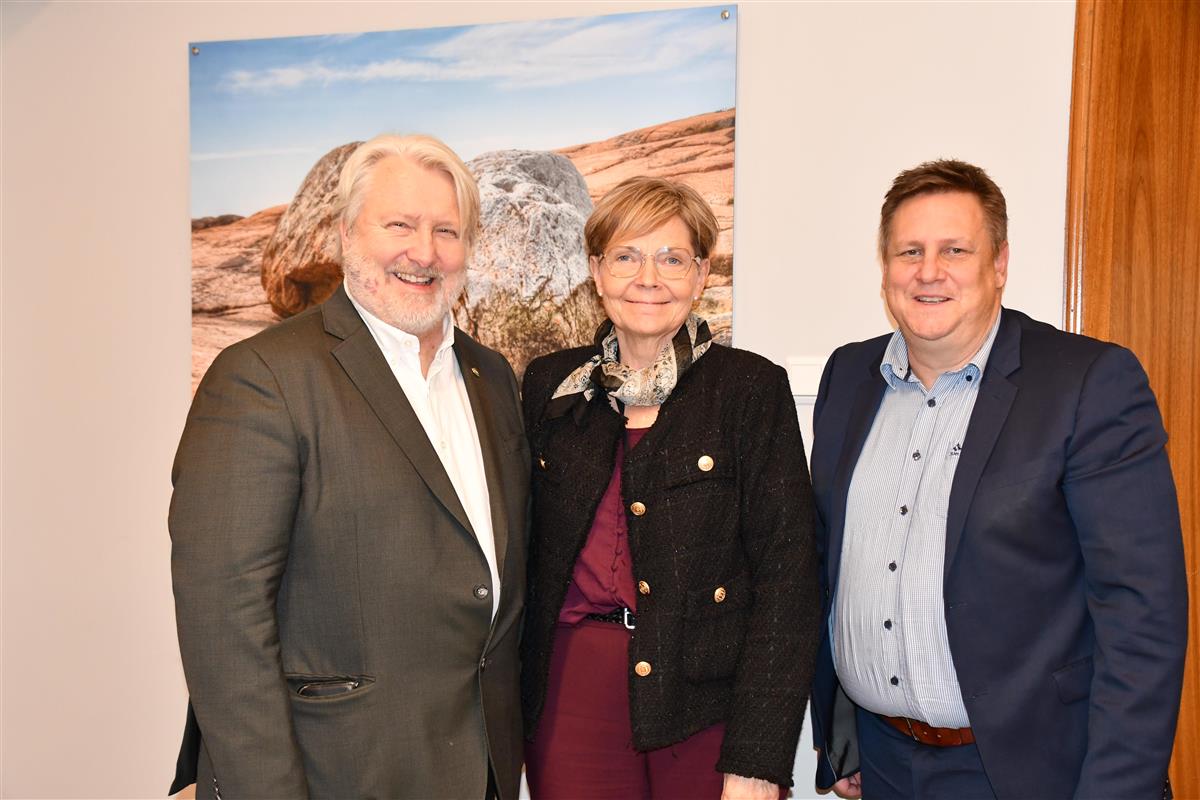 Ordfører René Rafshol, varaordfører Erling Ek Iversen og kommunedirektør Inger Skarpholt Fjeld